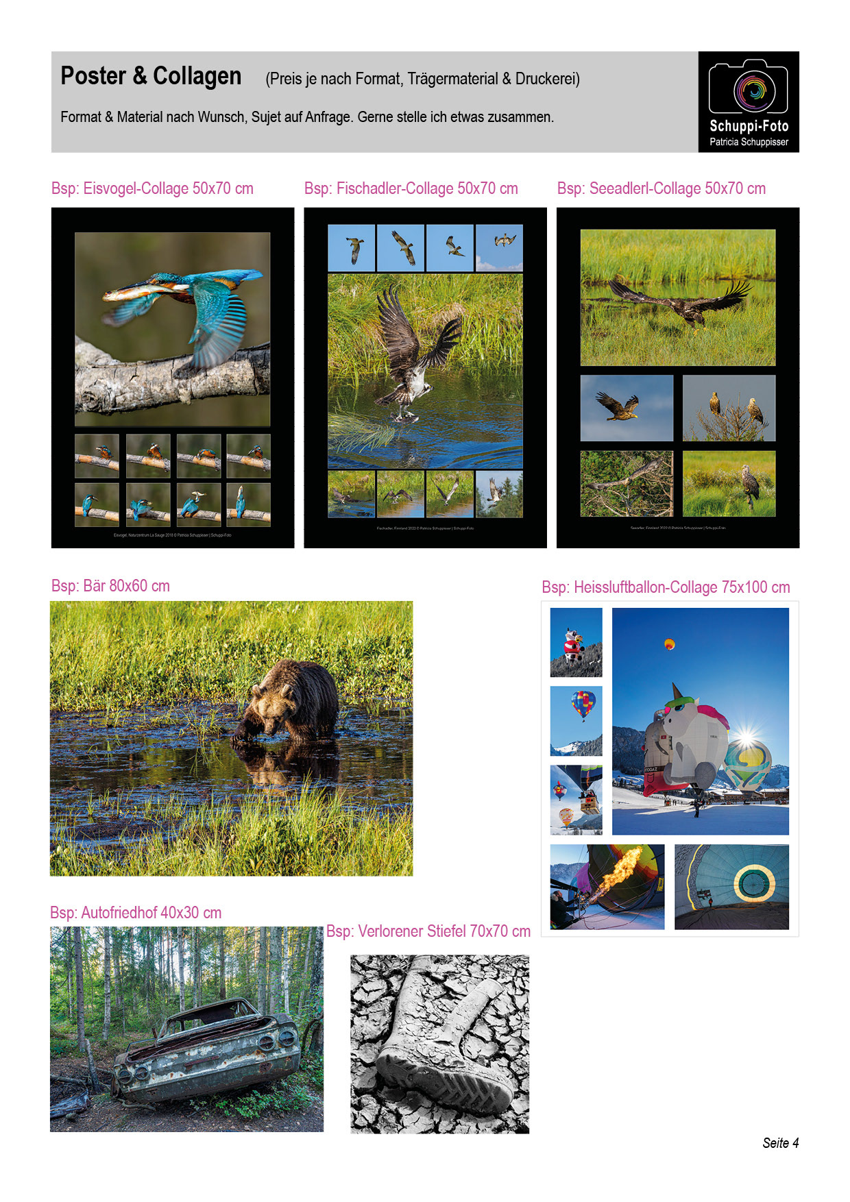 Posterbestellungen von Einzelbildern oder Collagen nach Absprache möglich - Preis je nach Foto und gewünschtem Material. Die Produkte können per Email, Kontaktformular oder telefonisch bestellt werden.